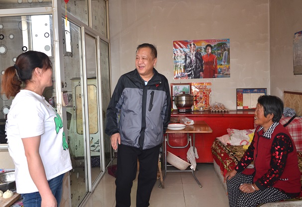 一下車,呂德育、吳利勤就走進(jìn)了“一對一”包扶貧困戶翟金蓮老人家中,老人因患有腦梗,年歲又高,沒有勞動能力,導(dǎo)致家庭貧困。呂德育關(guān)切地詢問了老人近來的身體健康狀況,仔細(xì)地查看了家里的環(huán)境衛(wèi)生情況,并向老人送去了自己的慰問金。老人感激地指著習(xí)主席的畫像說:“共產(chǎn)黨好,習(xí)主席好,多謝你們領(lǐng)導(dǎo)干部關(guān)懷和照顧,吃不愁,穿不愁,居住環(huán)境也干凈了,病了也有村合作醫(yī)療。我們老人趕上了好時代,才過上了這樣幸福的生活。”在交談中,呂德育再三叮囑老人要保重自己的身體,囑咐村干部要多照顧老人,特別要注意老人的身體健康和居家環(huán)境衛(wèi)生,讓老人度過一個幸福、安詳?shù)耐砟辍堄馈⒃茘彙⑽湓啤②w永強(qiáng)也分別走訪調(diào)研了“一對一”包扶貧困戶,征求了貧困戶的意見和建議。