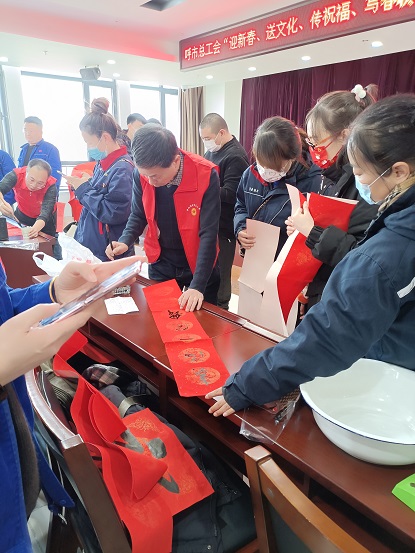 2022年春節將至,為營造歡樂祥和的節日氛圍,弘揚中華民族傳統文化,給集團公司職工送上新春美好的祝福, 1月11日下午,呼和浩特市總工會、集團公司工會組織70余名職工群眾在集團18樓會議室開展"迎新春、送文化、傳祝福、寫春聯"活動。