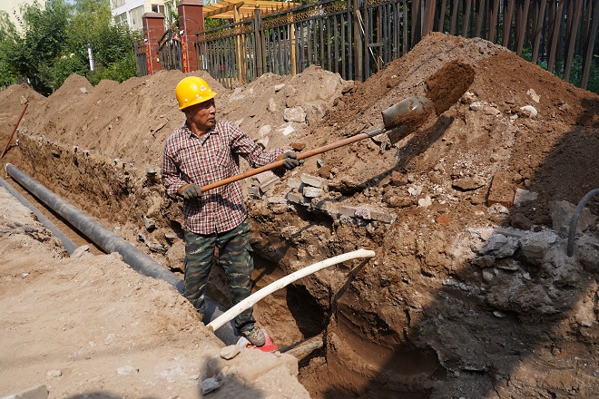 白云偉說,"這段供熱管線下面還有一段天然氣管線。這段管溝長度僅55米多,但施工難度較大,機具僅開挖了表層,其余是人工開挖,人工開挖就進行了三天,55米管溝開挖、鋪設管道就用了一周的工期。"