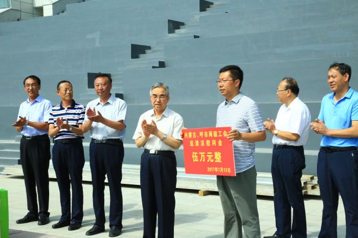 7月13日,內(nèi)蒙古自治區(qū)人大常委會副主任、總工會主席杭桂林,呼和浩特市政府副巡視員、黨組成員劉敏,市人大常委會副主任、總工會主席斯欽畢力格等一行向奮戰(zhàn)在我市重大項目重點工程內(nèi)蒙古少數(shù)民族群眾文化體育運動中心一線施工現(xiàn)場的工作人員進行送清涼慰問,發(fā)放5萬元慰問金,表達了兩級政府對我市重大項目重點工程一線單位職工的深切問候和關(guān)懷。城發(fā)公司董事長、黨委書記張瑞平,黨委副書記、工會主席張永等領(lǐng)導(dǎo)陪同。文\陳柯羽