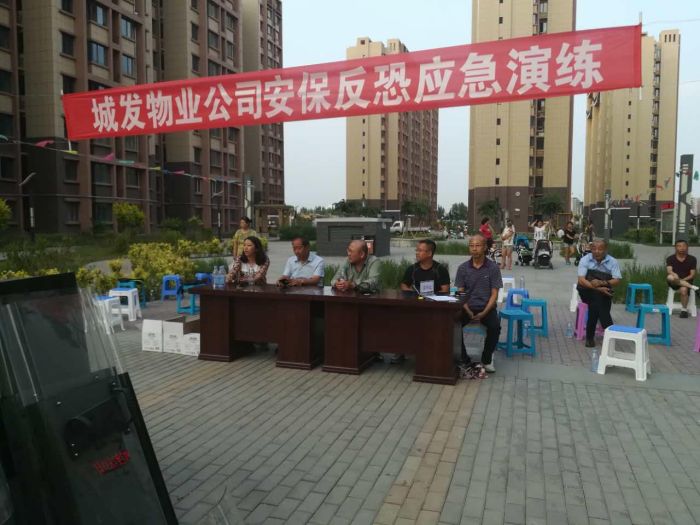 城發(fā)物業(yè)公司于2017年7月18-19日,在惠新苑公租房物業(yè)項(xiàng)目處,組織開展了安保反恐應(yīng)急演練。