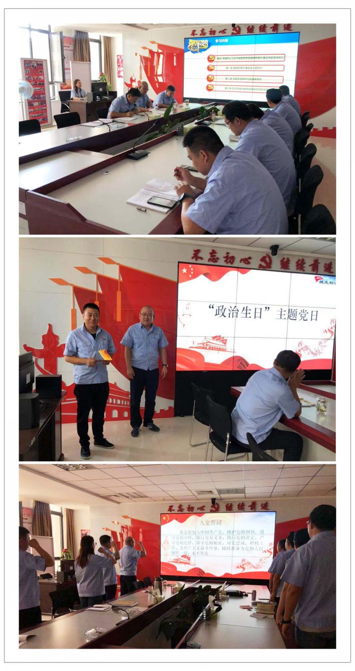 會上,云楊同志和大家一起學習分享了《全面推進國防和軍隊現代化》一書的緒論部分和第一章的內容,使大家深入了解了習近平強軍思想以及國防和軍隊進入新時代的具體內容;隨后,大家集中學習了《新時代黨性教育讀本》--《切實提高政治能力》《公職人員廉政教育手冊》--《組織人事方面》的內容;集體學習了“不忘初心,牢記使命”主題教育解讀--《從三個維度理解“不忘初心,牢記使命”的內涵》,加深大家對主題教育的理解。最后,大家為辛斌同志過了政治生日,在黨支部楊福平書記的帶領下,一起重溫入黨誓詞。