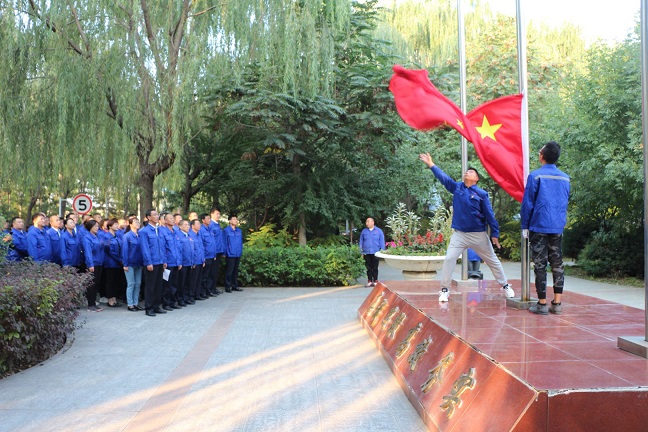 9月30日上午,城發公司組織公司領導班子全體成員、分(子)公司黨政負責人、機關各部室負責人及30多名一線職工在辛家營供熱分公司開展“升國旗、唱國歌”活動。