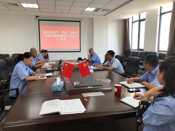 819日,城發公司副總經理趙永強聽取房地產公司、物流公司、建材公司等分管子公司的2020年二季度黨風廉政建設和反腐敗工作情況匯報,子公司負責人和相關人員共計10人參加了會議。